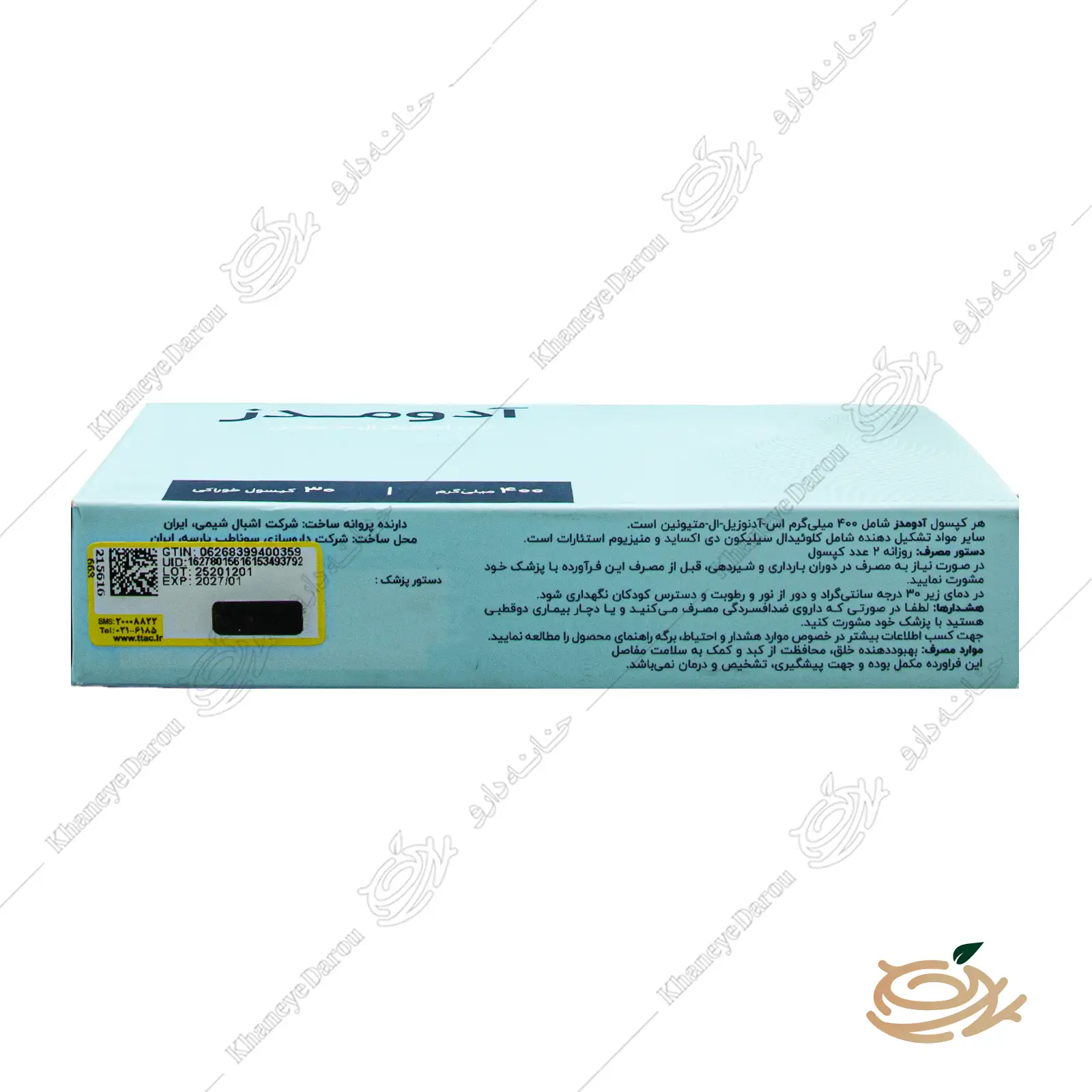 - دوز استاندارد: کپسول ADOMEDS® ۴۰۰ میلیگرم معمولاً دو بار در روز استفاده میشود. بسته به پاسخ بالینی، دوز میتواند تا ۱۶۰۰ میلیگرم در روز افزایش یابد (فقط با مشورت پزشک).