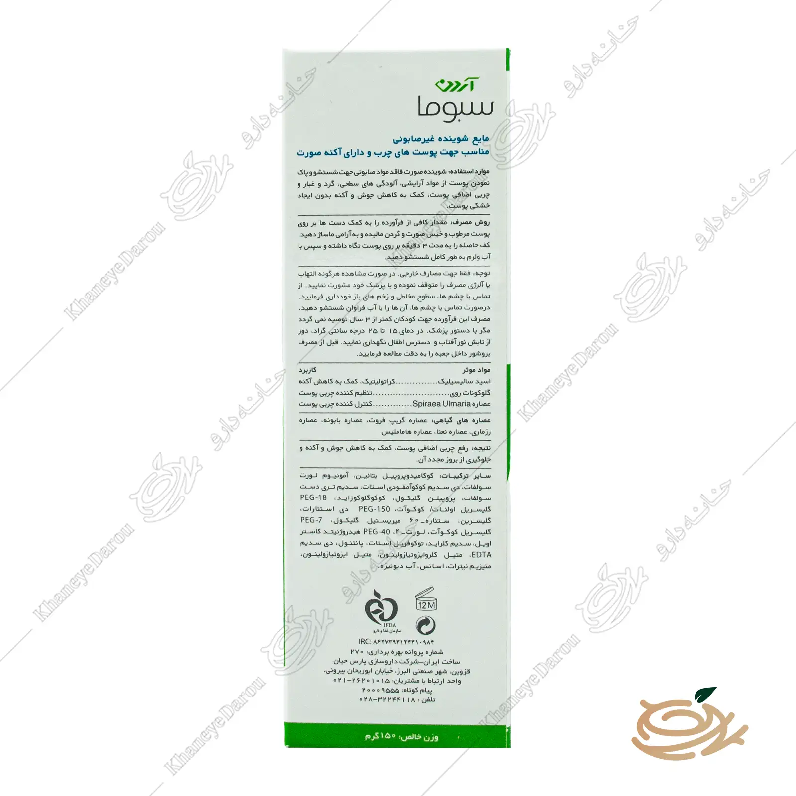 مایع شوینده غیرصابونی صورت سبوما آردن مناسب پوست چرب