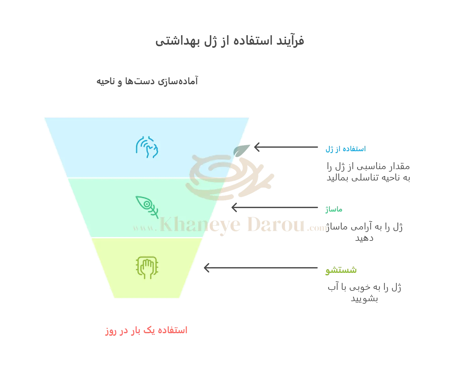 نکته: این محصول برای مصرف خارجی است و نباید بیش از یک بار در روز استفاده شود.