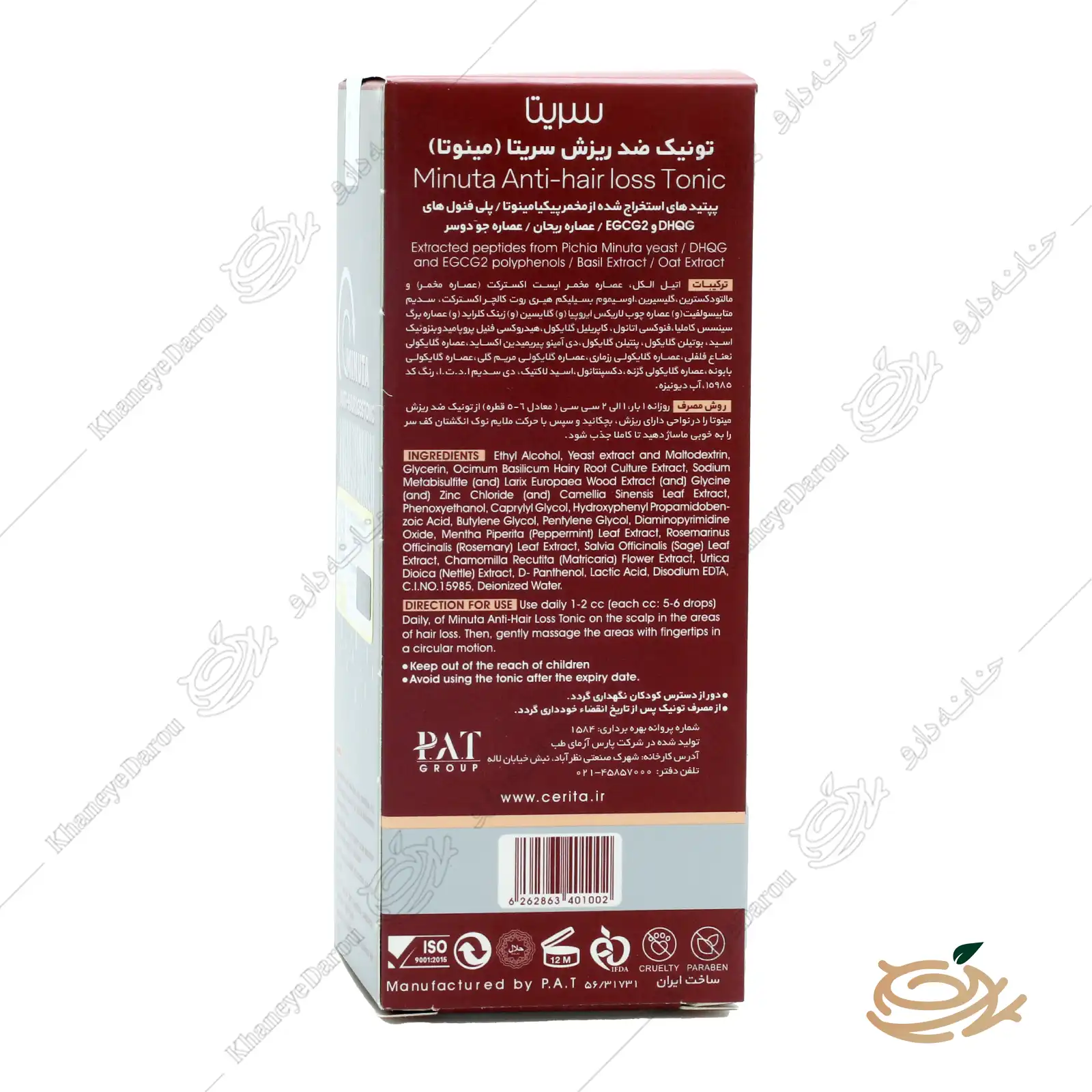 این محصول توسط برند ایرانی سریتا و تحت لیسانس سوئیس تولید میشود. - بهترین زمان استفاده از تونیک ضد ریزش مینوتا سریتا چه موقع است؟