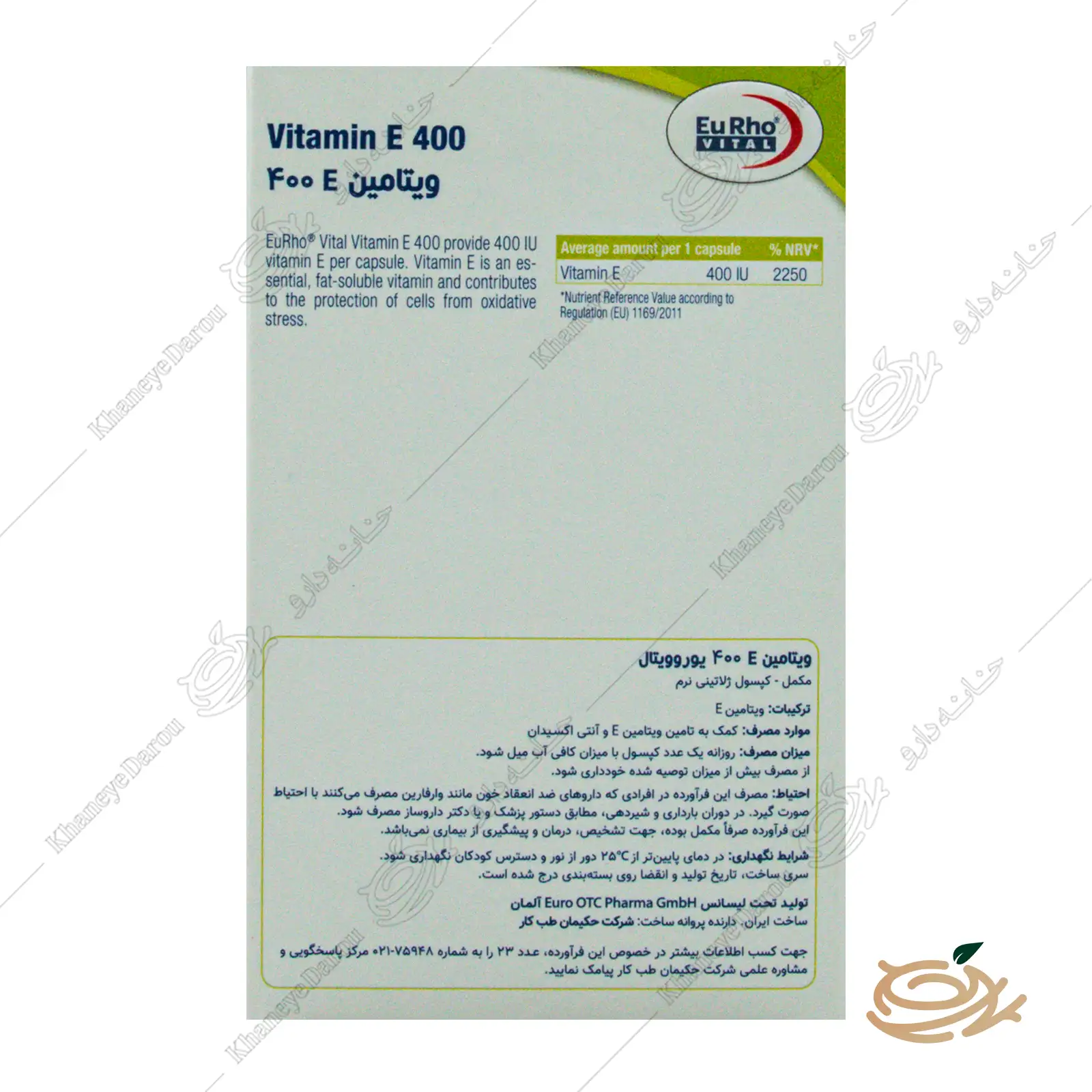 | نام فارسی/انگلیسی: ویتامین E ۴۰۰ یوروویتال / EuRho Vital Vitamin E 400 |