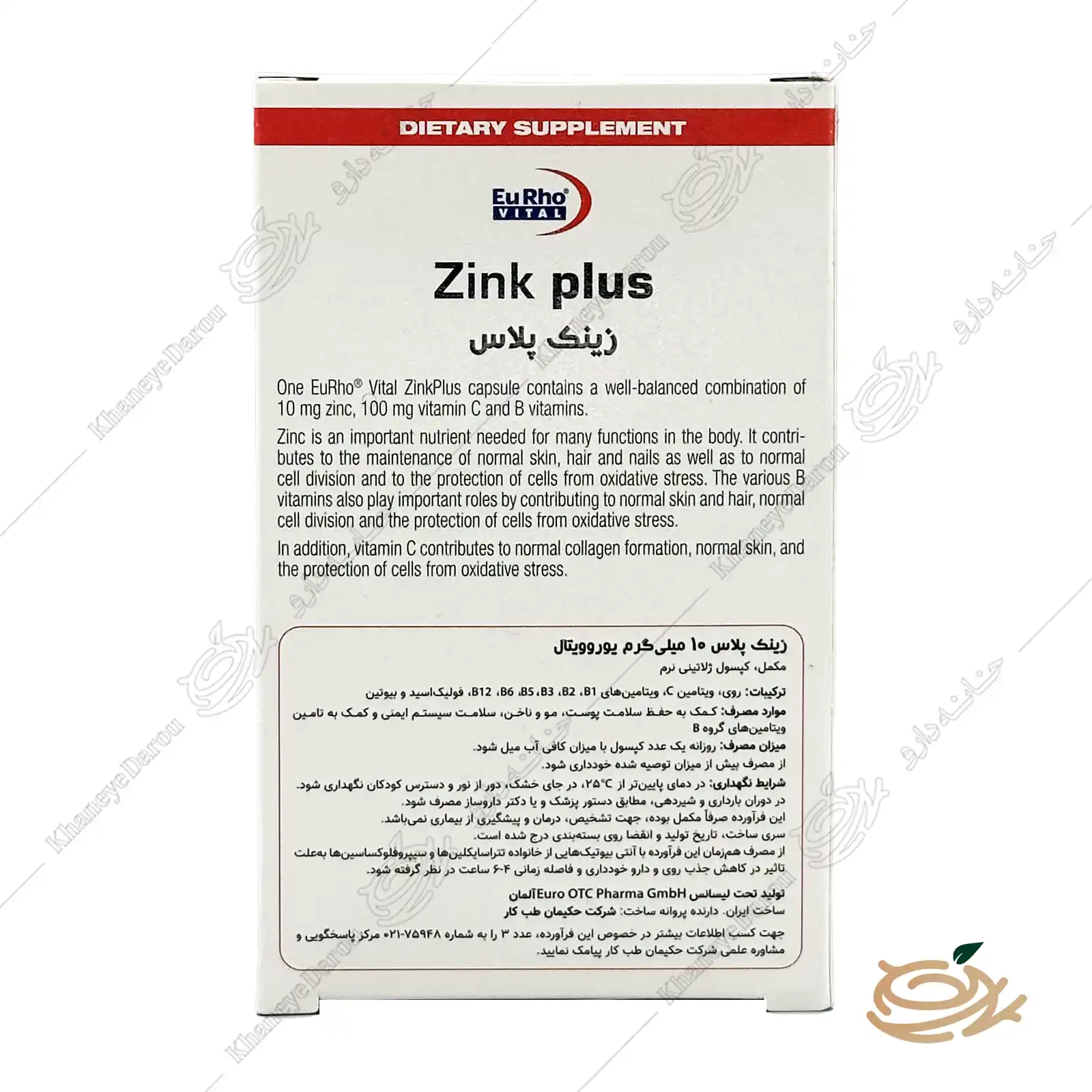 قرص زینک پلاس ۱۰ میلی گرم یوروویتال ۶۰ عدد