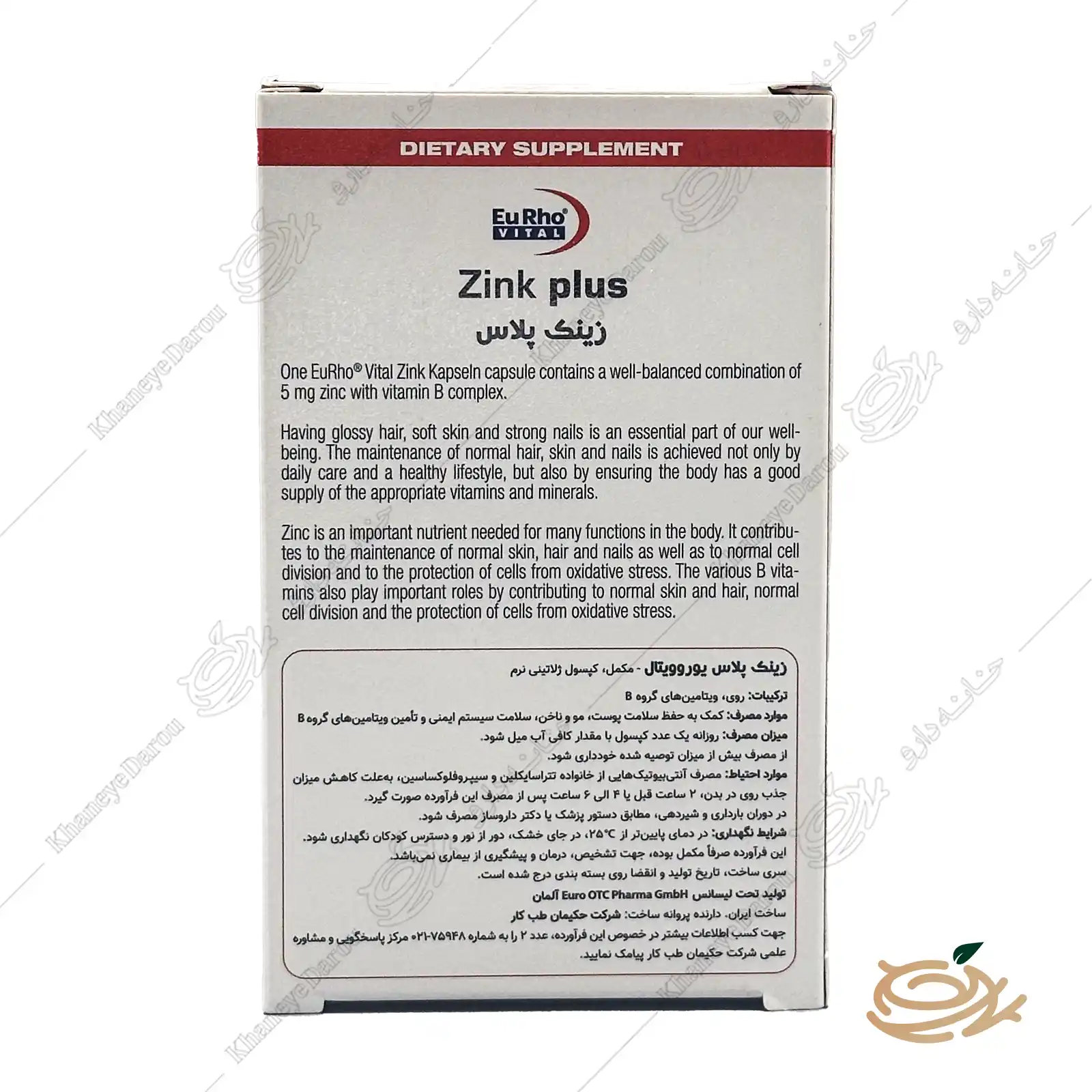 زینک پلاس ب کمپلکس یوروویتال تحت لیسانس شرکت Euro OTC Pharma انگلستان و با کیفیت بالا تولید می ‌شود. این مکمل از سال 1386 توسط شرکت حکیمان طب کار وارد بازار ایران شده و به یکی از انتخاب ‌های اصلی پزشکان و داروسازان تبدیل گردیده است.