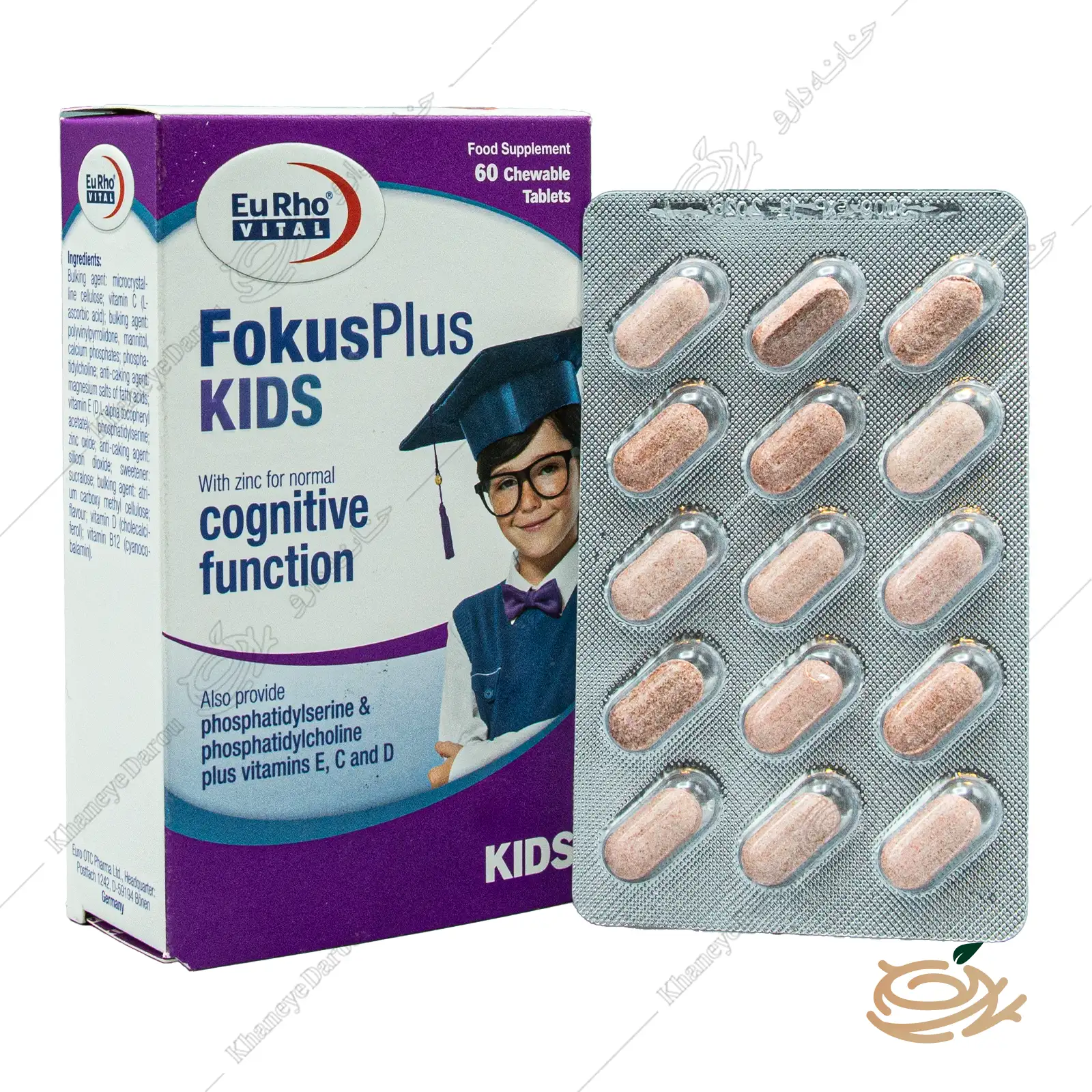 قرص جویدنی فوکوس پلاس کیدز یوروویتال حاوی یک ترکیب علمی و منحصربهفرد از فسفولیپیدهای حیاتی در کنار مجموعه ویتامینها و زینک است که به طور خاص برای تکامل شناختی، تقویت حافظه، تفکر و یادگیری در کودکان و نوجوانان طراحی شده است.