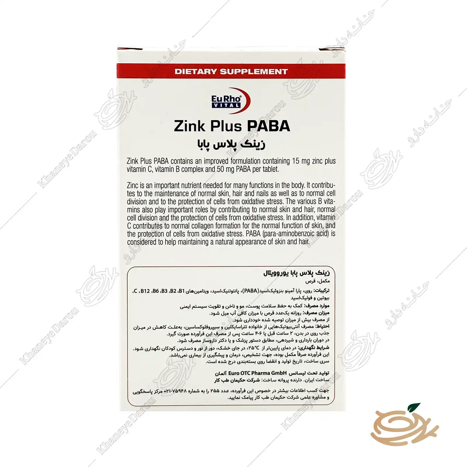 قرص زینک پلاس پابا یوروویتال 60 عدد