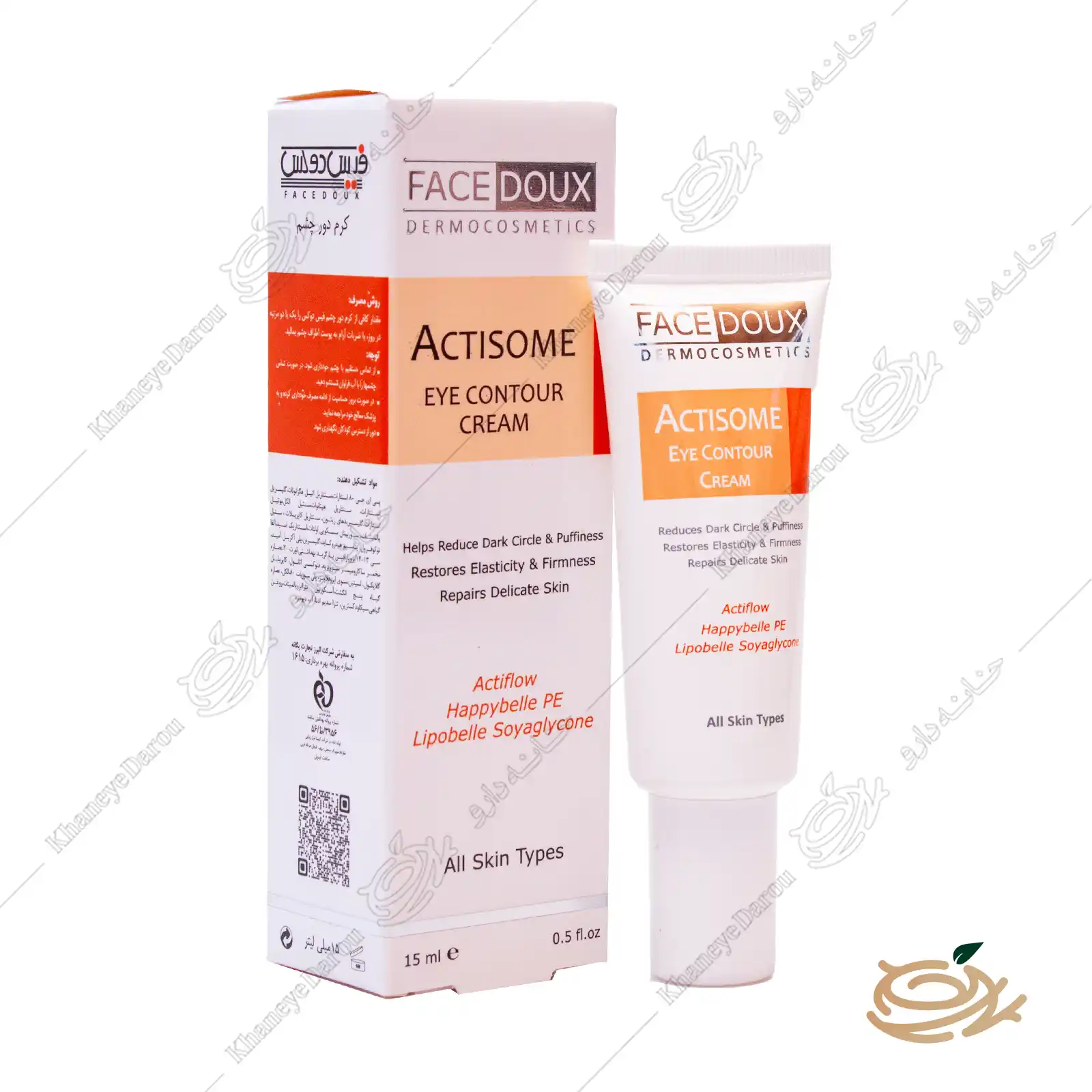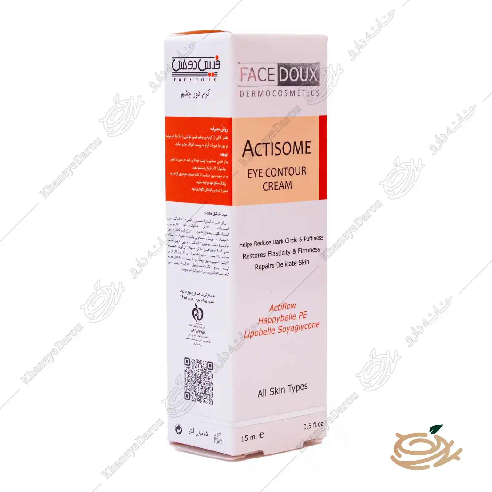 این محصول با ترکیب مواد مؤثر مانند Actiflow ، Happybelle PE و Lipobelle Soyaglycone توانسته اثربخشی بالایی در کاهش چین و چروک، پف زیر چشم و بازسازی پوست حساس اطراف چشم داشته باشد. برند فیس دوکس، به عنوان یکی از تولیدکنندگان معتبر ایرانی محصولات آرایشی و بهداشتی، این کرم را بهصورت تخصصی برای انواع پوست بانوان و آقایان ارائه کرده است.
