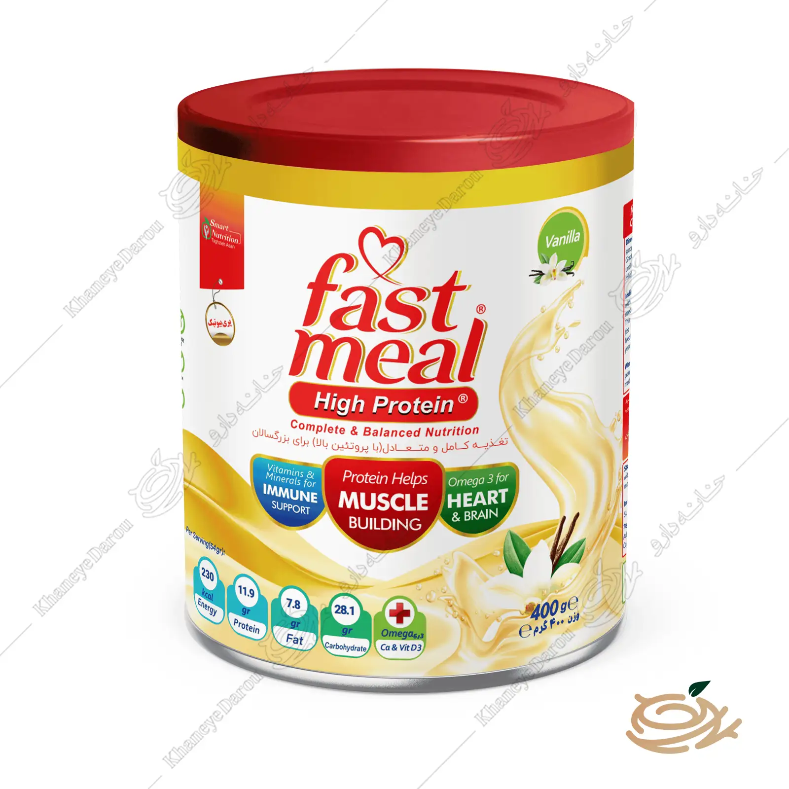 همین امروز میتوانید با خیال راحت، پودر فست میل پر پروتئین وانیلی ۴۰۰ گرمی یا شکلاتی مورد علاقه خود را از داروخانه آنلاین خانه دارو سفارش دهید. تضمین میکنیم که سفارش شما در اسرع وقت ارسال شده و در مسیر بهبود کیفیت زندگی شما قرار گیرد.