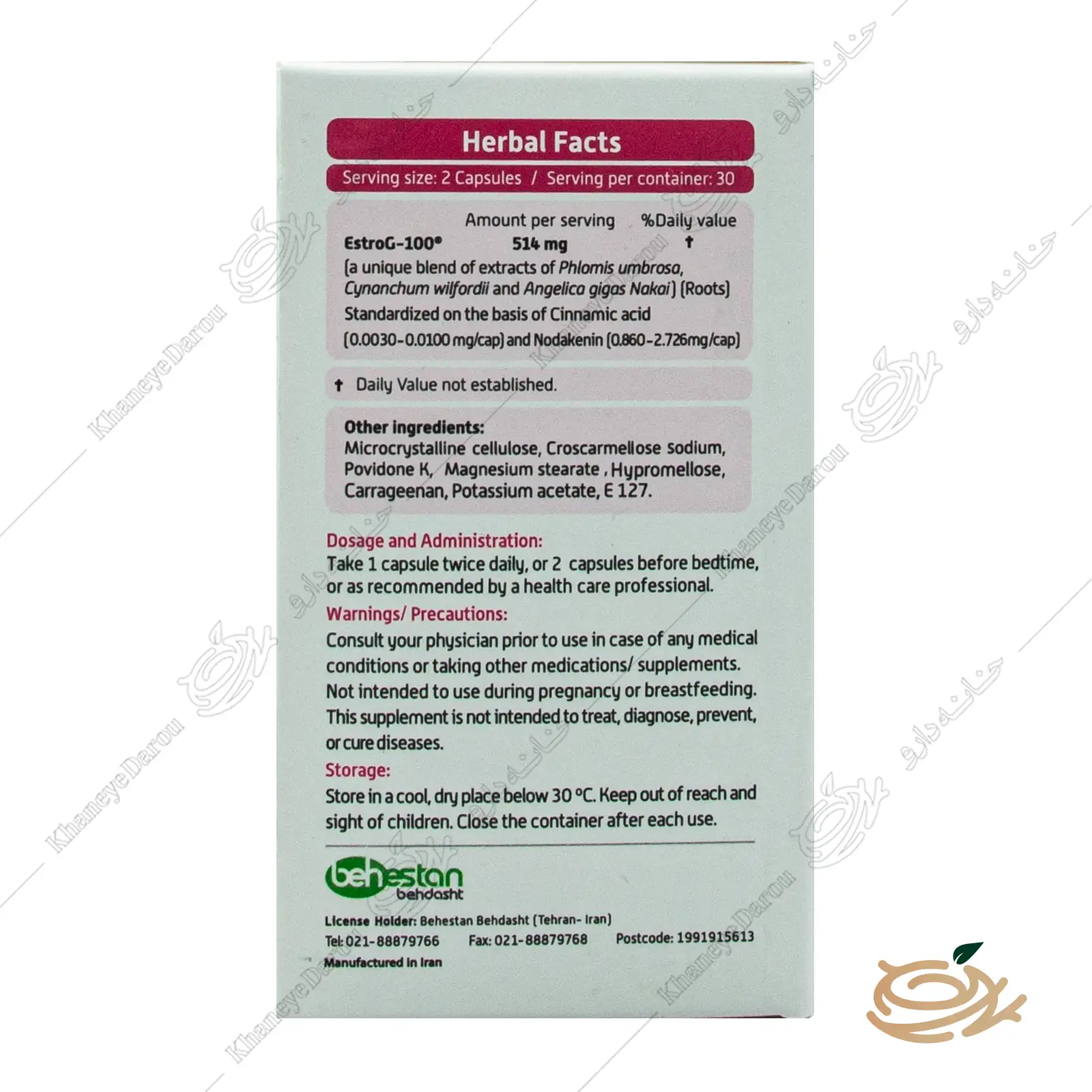 - مزیت رقابتی کلیدی: Gen EstroG-100 کاملاً غیر هورمونی و فاقد فیتواستروژن است؛ بنابراین، برای بانوانی که محدودیت مصرف استروژن یا سویا دارند، انتخابی ایدهآل و ایمن است.