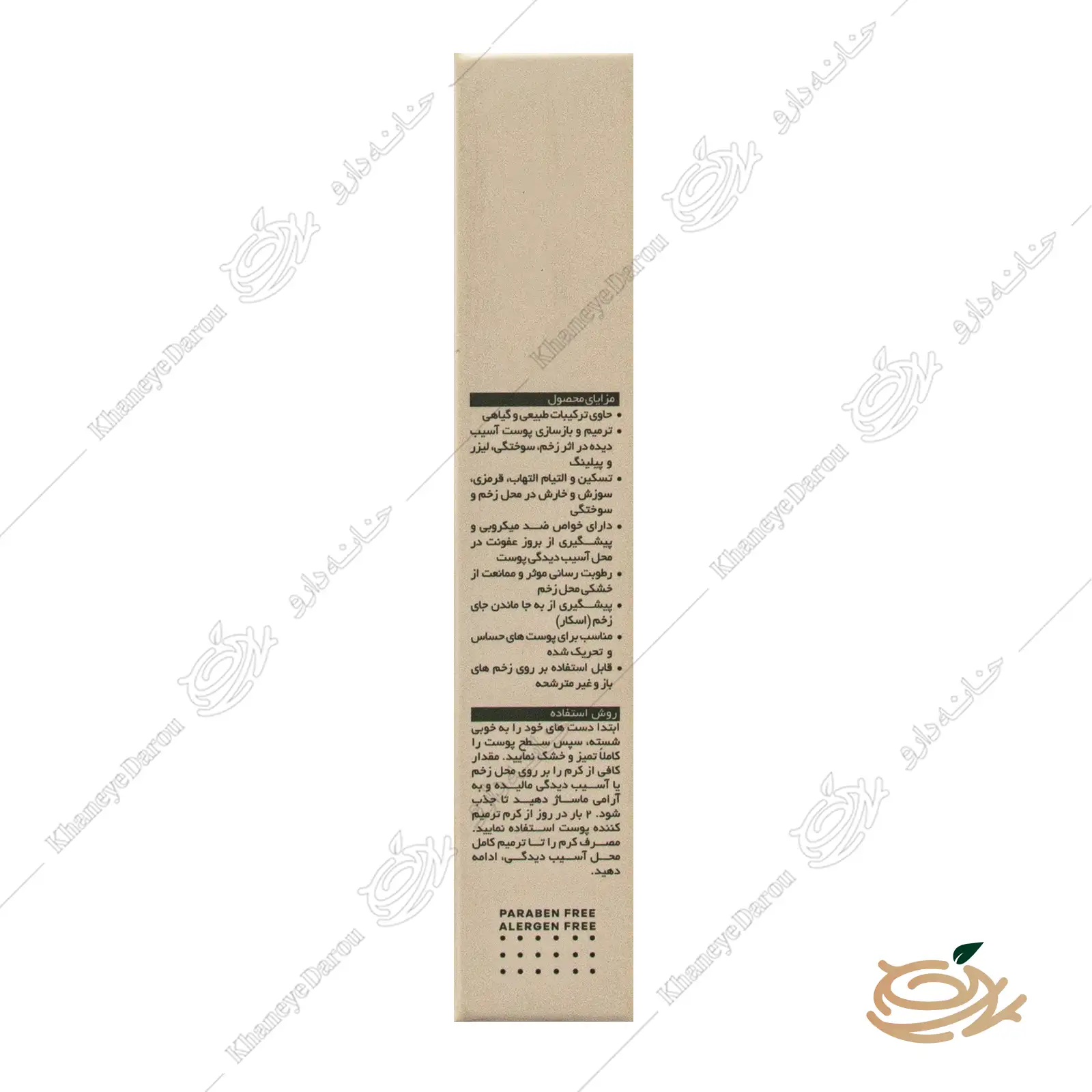 | روش مصرف | موضع را کاملاً تمیز و خشک کنید. روزی دو بار (صبح و شب) یک لایه نازک روی پوست آسیبدیده ماساژ دهید تا جذب شود. |