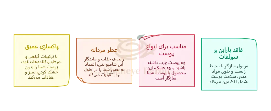 - فاقد پارابن و سولفات:فرمول سازگار با محیط زیست و بدون مواد مضر، سلامت پوست شما را تضمین میکند.