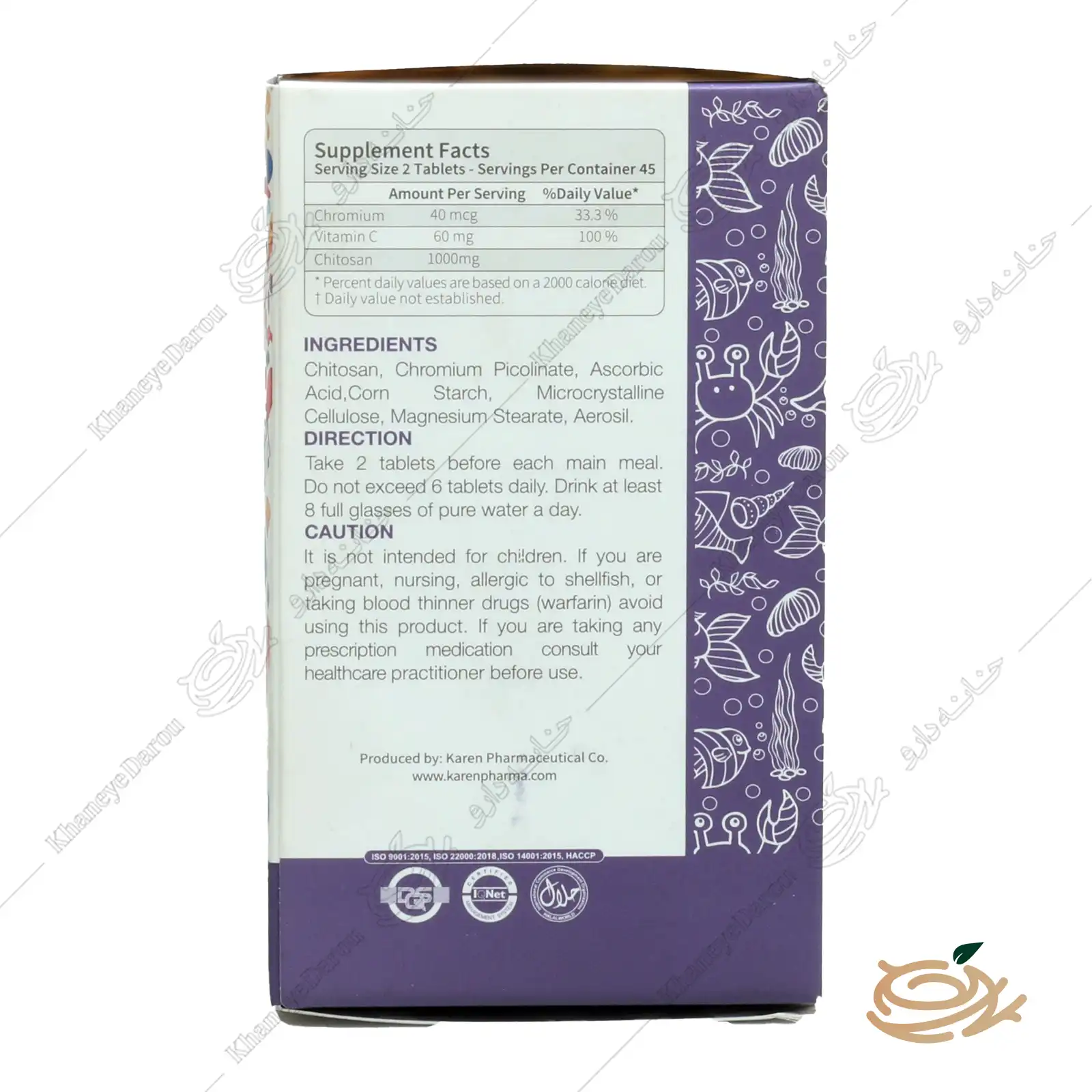 ترکیبات و فواید قرص کیتوزان ۵۰۰ کارن