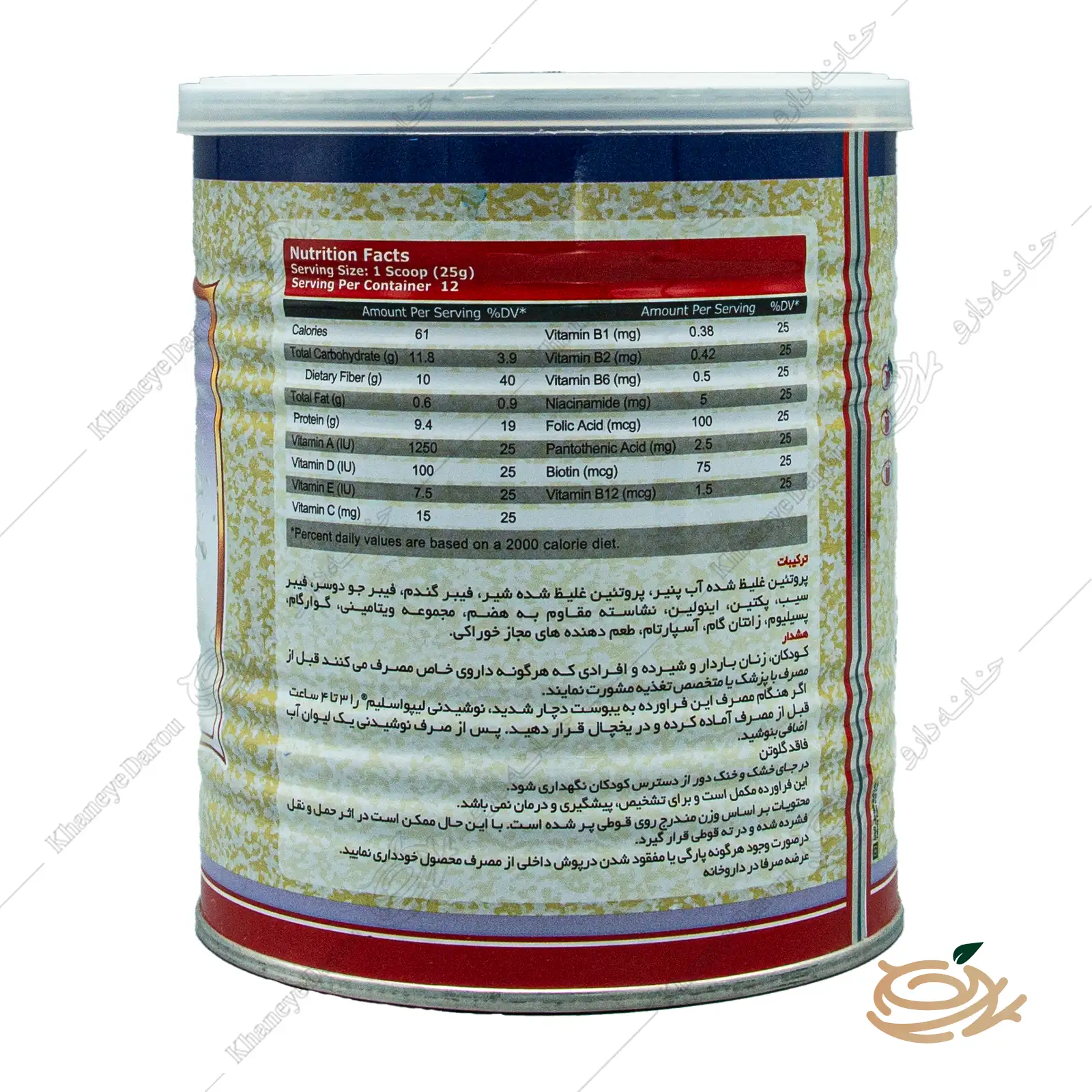 - روش مصرف: یک پیمانه (۲۵ گرم) از پودر را در یک لیوان (حدود ۱۵۰ میلیلیتر) آب یا شیر کم چرب حل نمایید.
