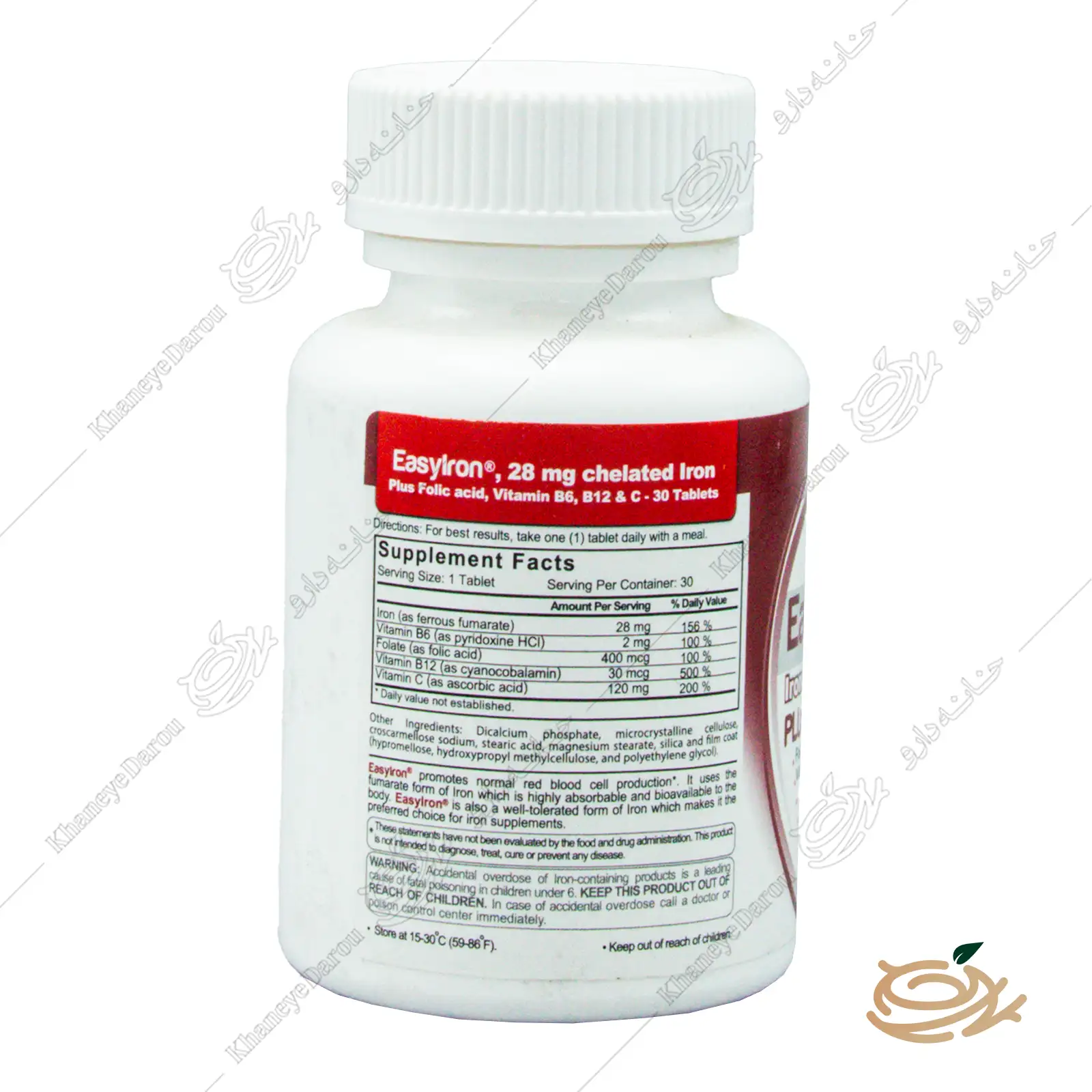 ایزی آیرون پلاس از فرم فومارات (کمتر عارضه) استفاده می‌کند و حاوی ویتامین‌های  B12و  C برای جذب و اثربخشی بالاتر است.