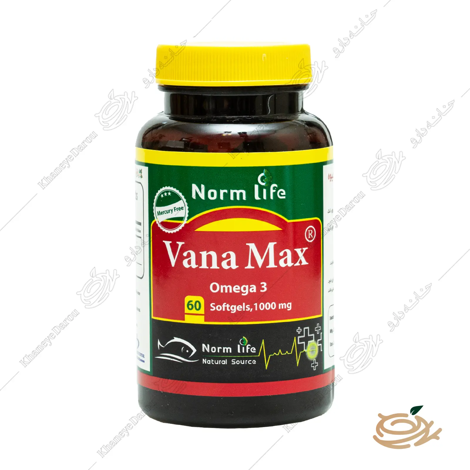 سافت ژل امگا 3 وانا مکس نورم لایف (Norm Life Omega 3 Vana Max) یک مکمل غذایی تخصصی است که به شکل کپسول نرم ژلاتینی (Soft gel) تولید شده و منبع غنی اسیدهای چرب ضروری اُمگا 3، به ویژه EPA و DHA است.