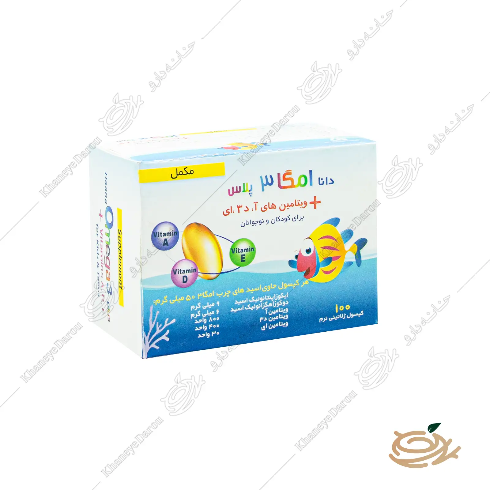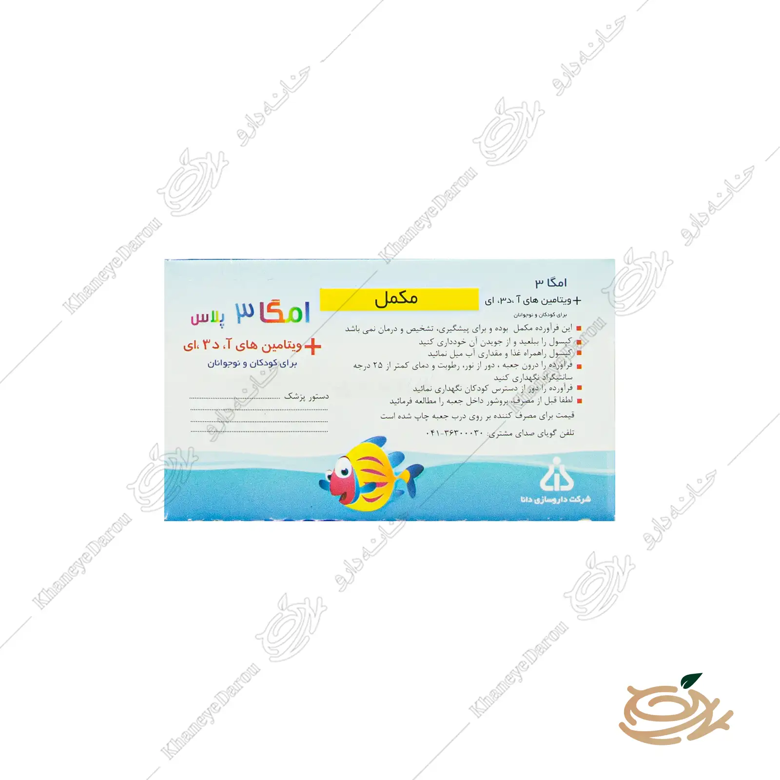 - کپسول امگا 3 پلاس دانا برای چیست؟ پاسخ: این کپسول برای تأمین نیازهای ضروری بدن به اسیدهای چرب امگا 3 و ویتامینهای A, D3 و E است که به رشد مغز، چشم و استخوانها کمک میکند.