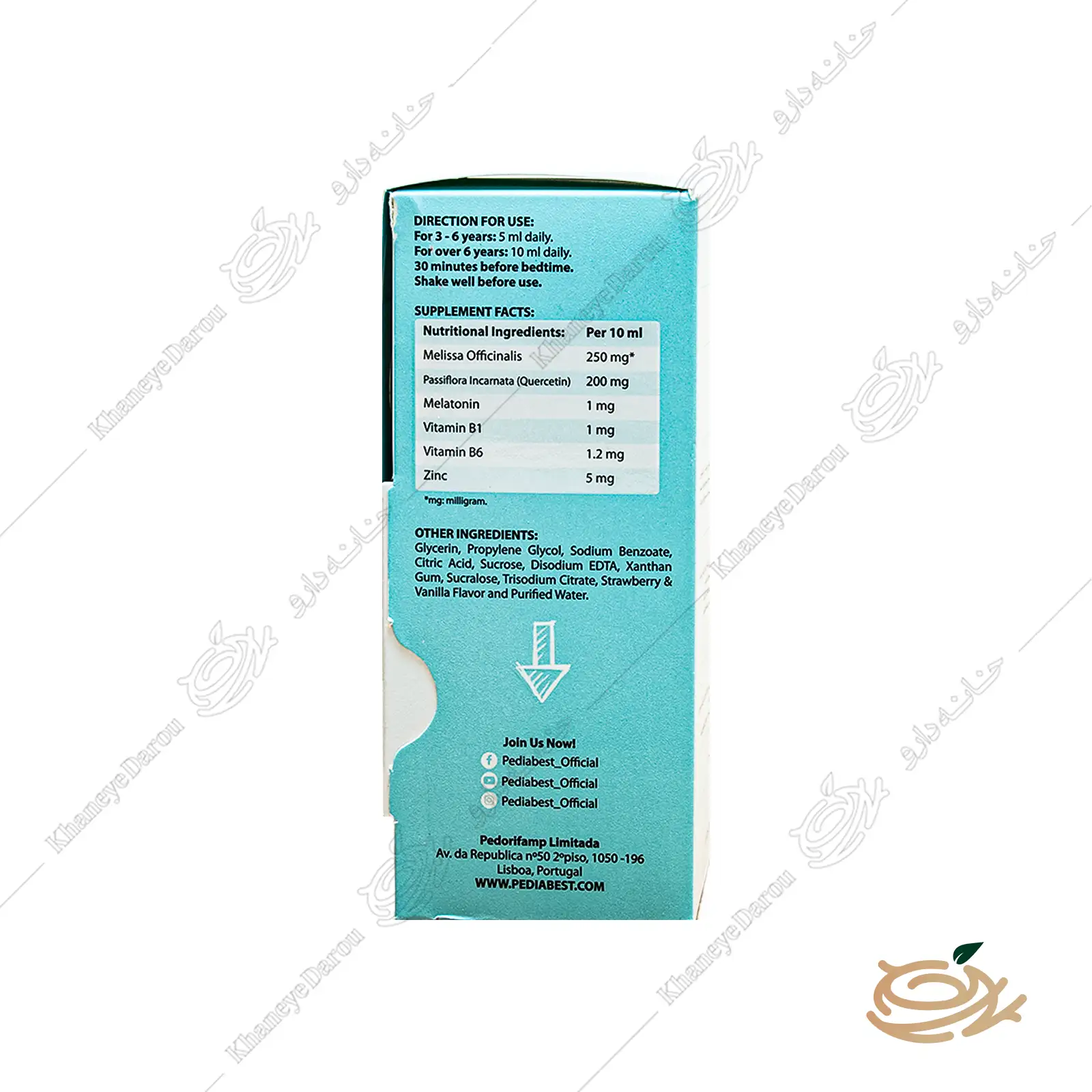 - شربت پدیابست اسلیپ مخصوص کودکان بالای سه سال است و با ترکیب منحصر به فرد عصاره بادرنجبویه، گل ساعتی، ملاتونین و ویتامین های گروه B، به بهبود کیفیت خواب و آرامش کودک کمک میکند.