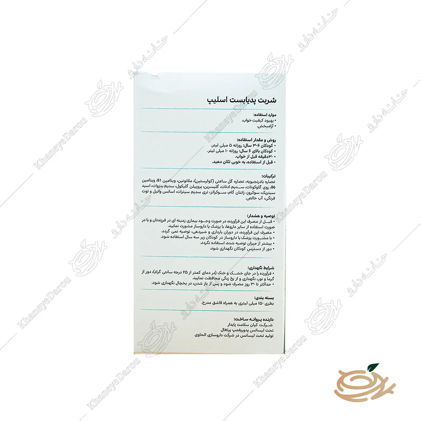 اگر برای کودک خود یا نزدیکانتان به دنبال راهحل علمی و مطمئن برای مشکلات خواب هستید، همین امروز به صفحه محصول شربت پدیابست اسلیپ در خانه دارو مراجعه کنید، اطلاعات بیشتر بخوانید و با مشاوره تخصصی، بهترین تصمیم را بگیرید.