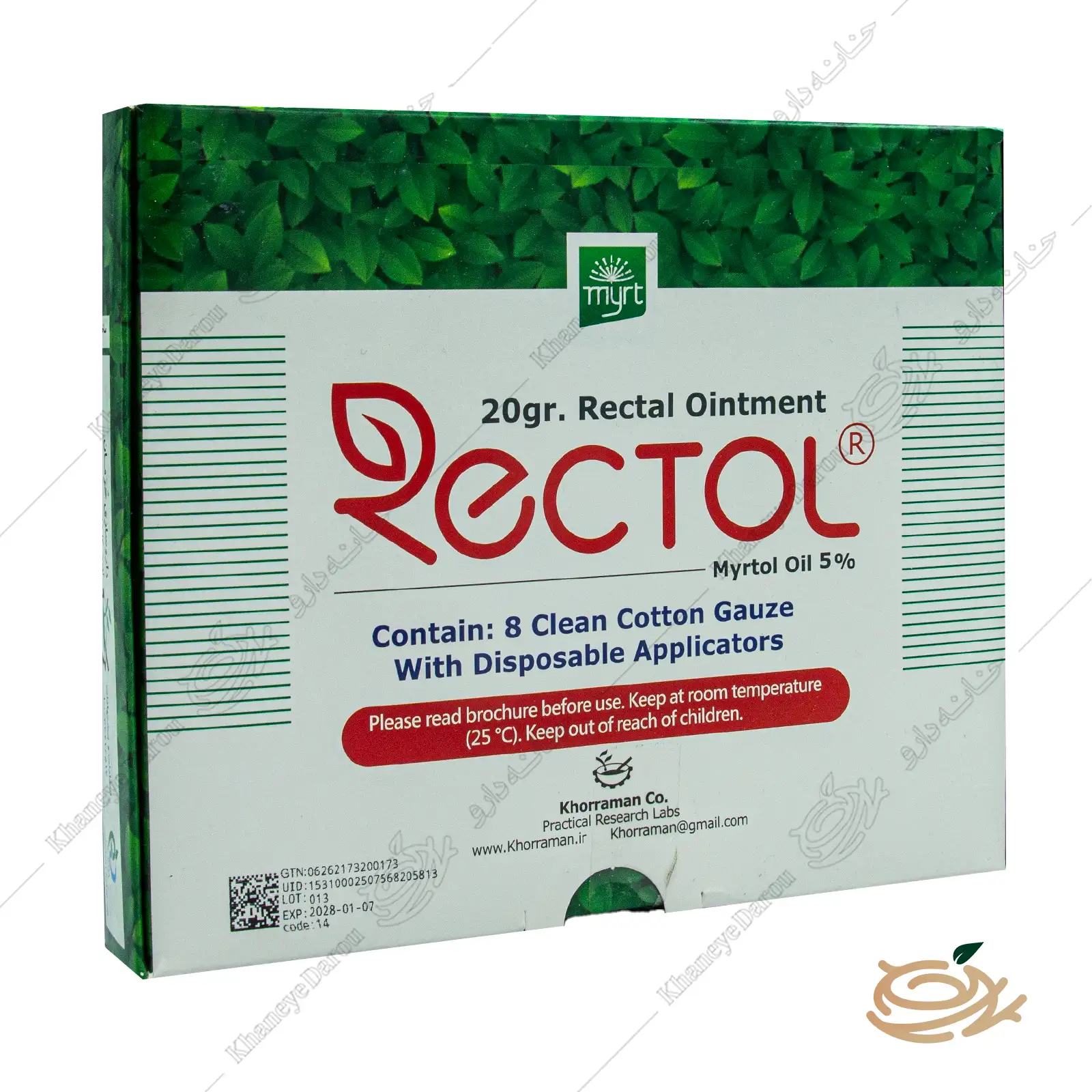 - تضمین اصالت کالا: ما در خانه دارو ، اصالت پماد رکتول را با شماره پروانه ساخت وزارت بهداشت (IRC: 1228206153) تضمین میکنیم.