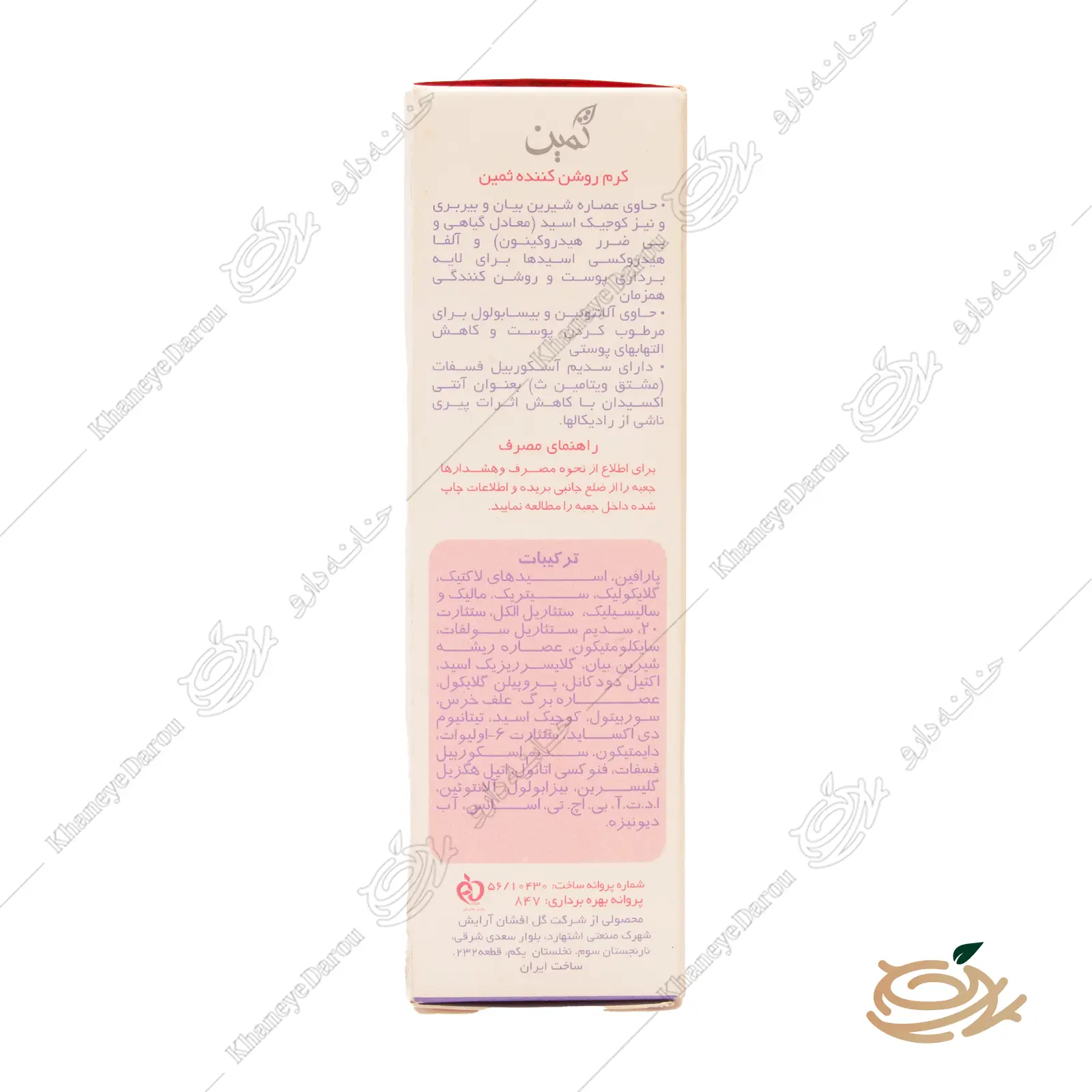 ترکیبات روشن کننده ثمین و اثرات علمی کرم روشن کننده ثمین