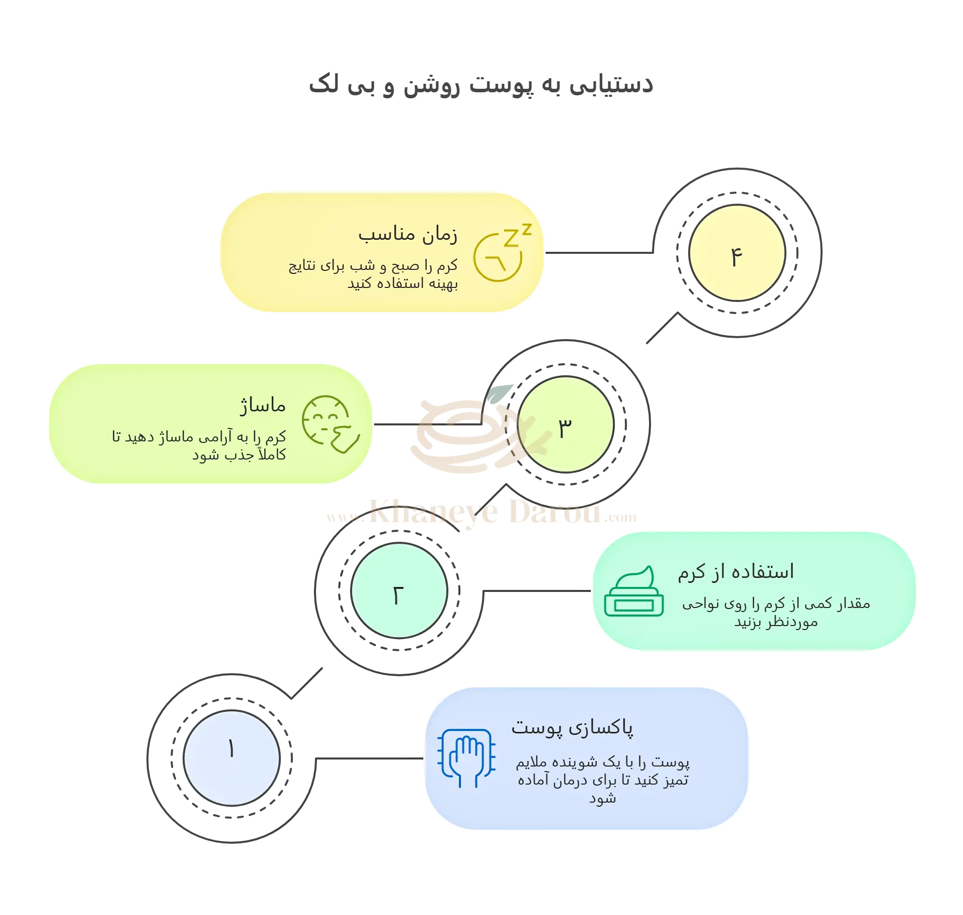 نکته: برای محافظت بیشتر، پس از استفاده از کرم، حتماً از کرم ضدآفتاب استفاده کنید.