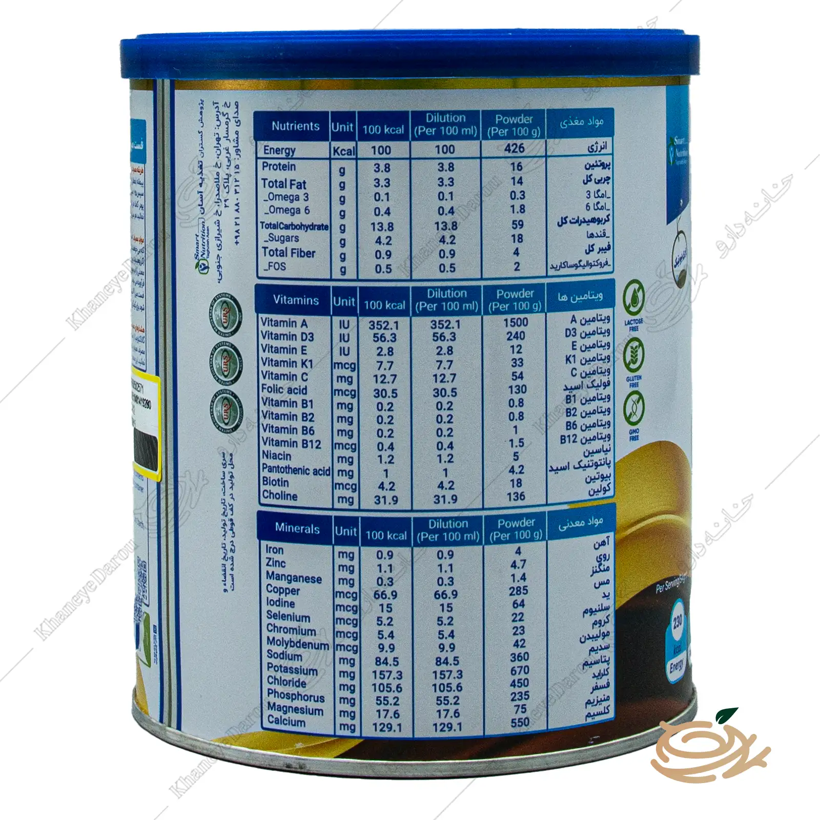 - مزیت ویژه: این محصول فاقد گلوتن و فاقد لاکتوز است، بنابراین برای دستگاه گوارش حساس کاملاً ایمن بوده و از ایجاد نفخ، اسهال یا کرامپهای شکمی جلوگیری میکند. وجود پریبیوتیک (اینولین) نیز به حفظ سلامت باکتریهای مفید روده کمک شایانی میکند.