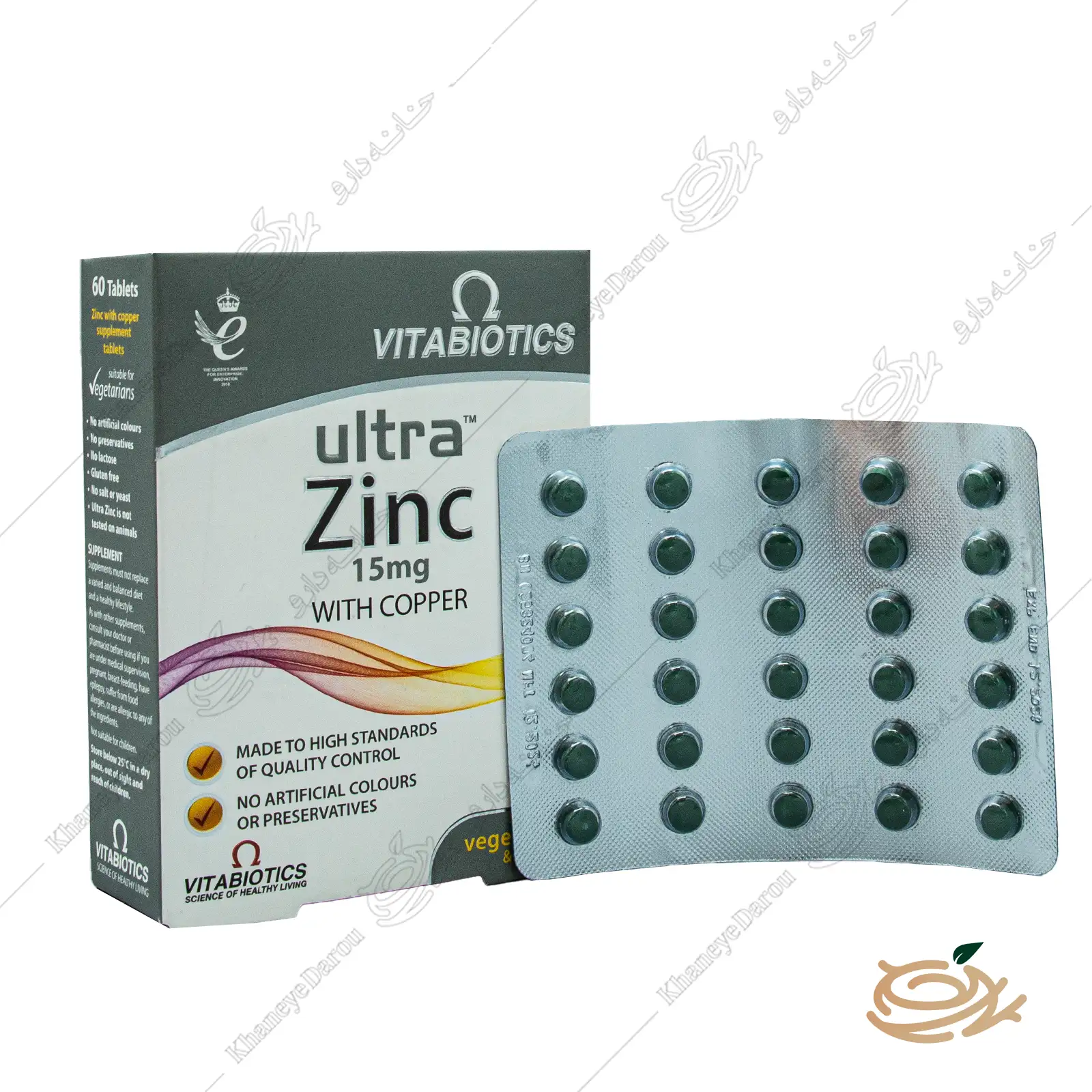 قرص اولترا زینک 15 میلی گرم ویتابیوتیکس محصول شرکت معتبر ویتابیوتیکس (Vitabiotics) کشور انگلستان است. این مکمل با ارائه ۱۵ میلیگرم روی (Zinc) در هر قرص، نیاز روزانه شما به این ماده معدنی را به طور کامل برآورده کرده و آن را با ۱۰۰۰ میکروگرم (۱ میلیگرم) مس (Copper) ترکیب میکند.