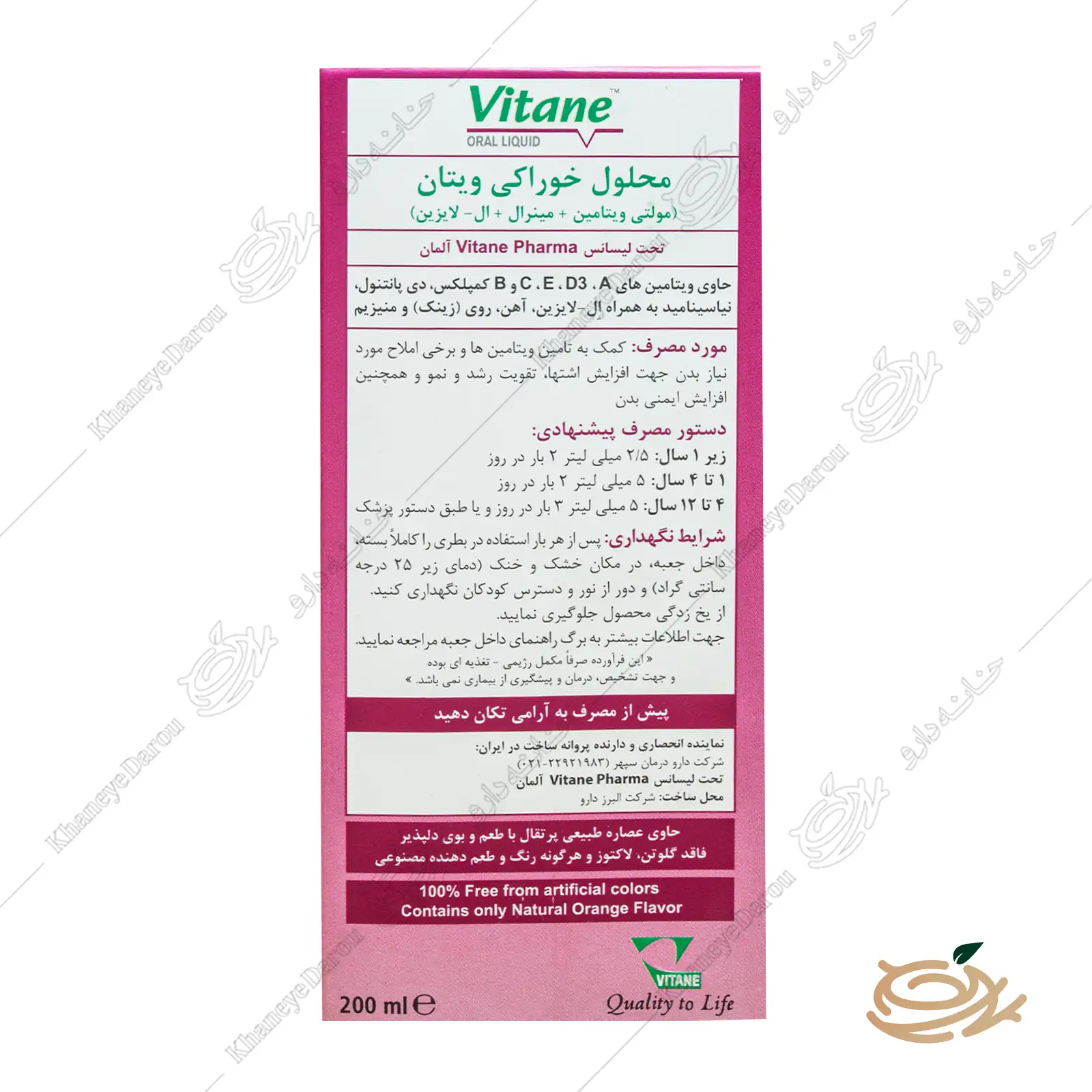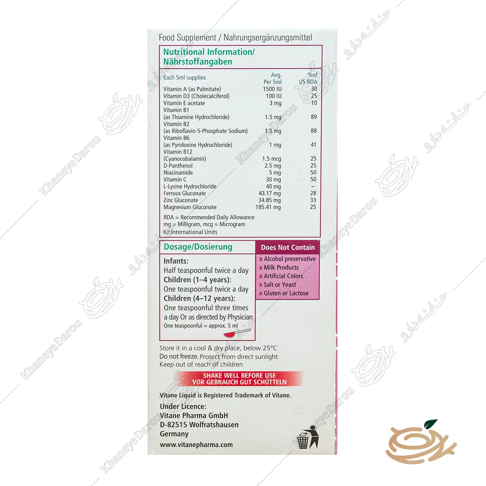 - شربت ویتان یک مولتی ویتامین کامل و تخصصی برای کودکان است که زیر نظر شرکت معتبر آلمانی، ویتان فارما تولید میشود.