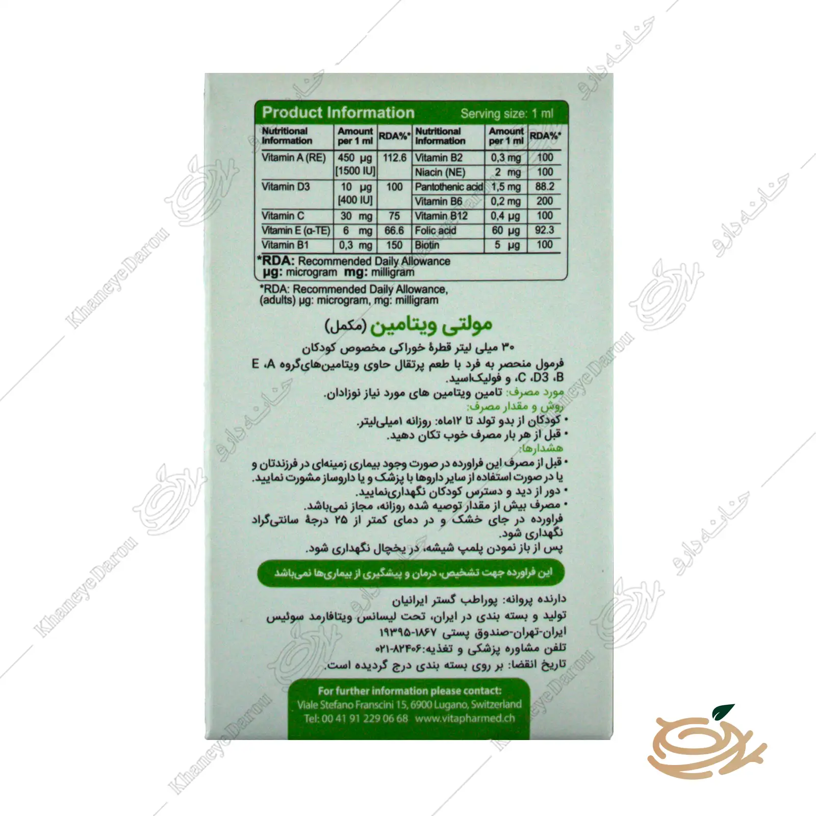 قطرهای خوراکی با ترکیب کاملی از ویتامینهای ضروری که به رشد و تقویت سیستم ایمنی نوزادان و کودکان کمک میکند.